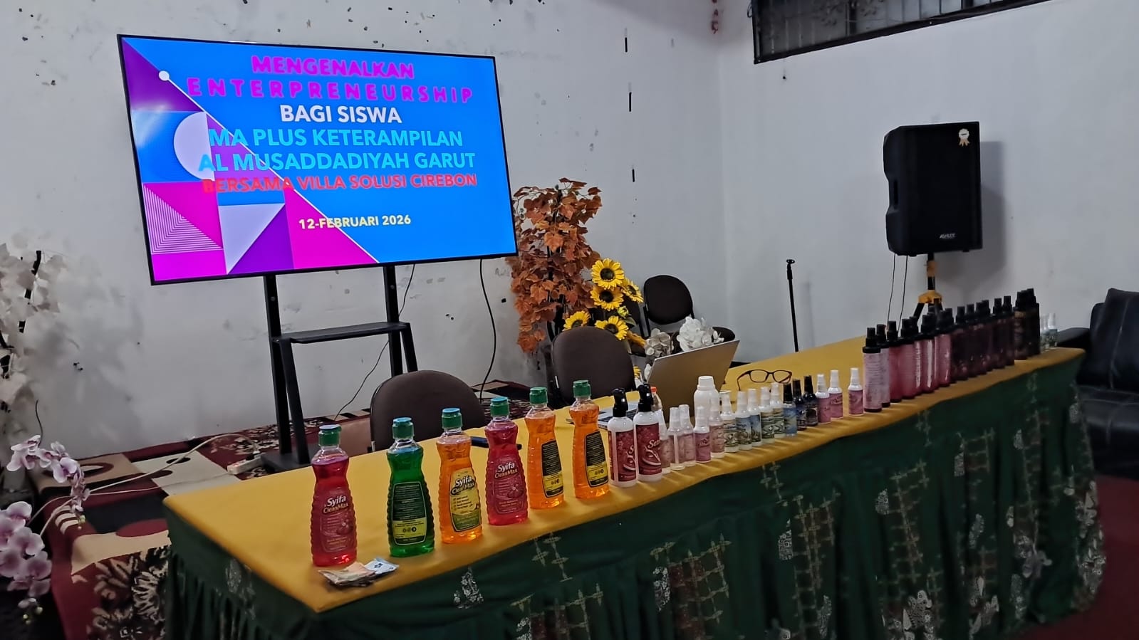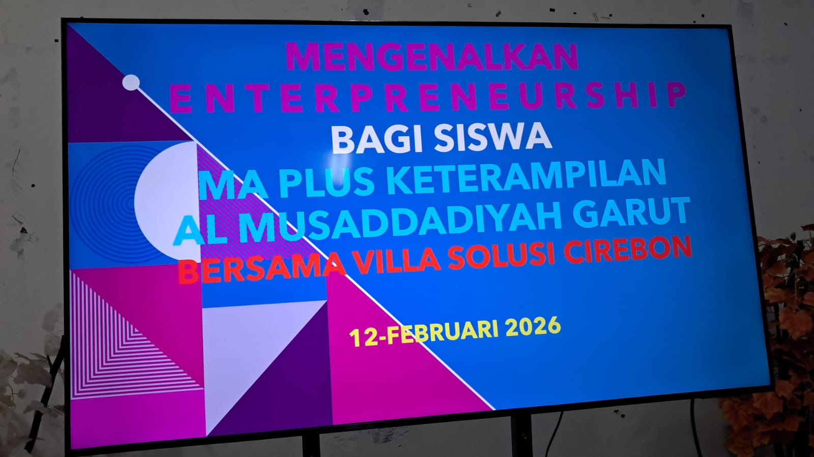 GARUT – Dalam upaya mencetak generasi muda yang mandiri dan berjiwa kreatif, MA Plus Keterampilan Al Musaddadiyah Garut menyelenggarakan kegiatan bertajuk “Mengenalkan Enterpreneurship Bagi Siswa”. Kegiatan yang berlangsung pada Kamis, 12 Februari 2026 ini bekerja sama dengan Villa Solusi Cirebon sebagai mitra ahli dalam pengembangan kewirausahaan.